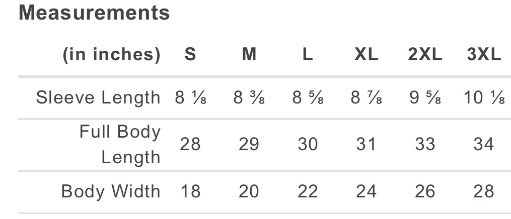 - Size Chart Available